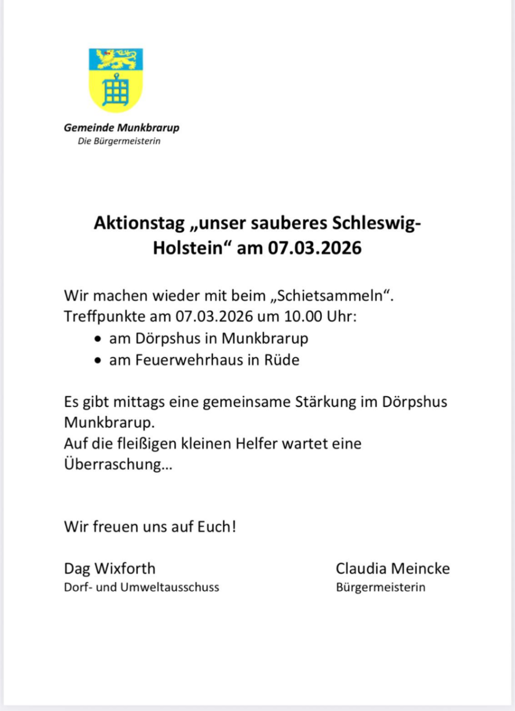 Ein fröhliches Moin von uns, wir sind die AG Kultur der Gemeinde Munkbrarup. Wir haben uns zum Ziel gemacht, das Dörpshus der Gemeinde mit Leben zu füllen. Mit Veranstaltungen aller[…]